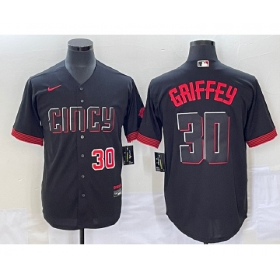 Men's Cincinnati Reds #30 Ken Griffey Jr Black 2023 City Connect Flex Base Stitched Jersey