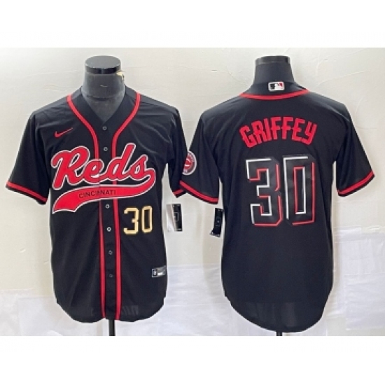 Men's Cincinnati Reds #30 Ken Griffey Jr Number Black 2023 City Connect Cool Base Stitched Jerseys
