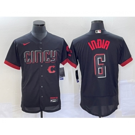 Men's Cincinnati Reds #6 Jonathan India Black 2023 City Connect Flex Base Stitched Jersey 1
