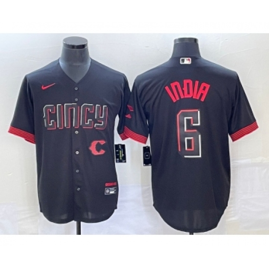 Men's Cincinnati Reds #6 Jonathan India Black 2023 City Connect Stitched Jersey1