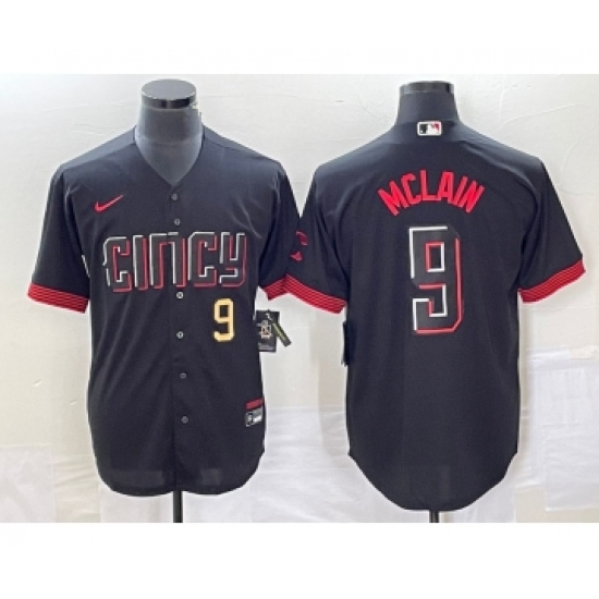 Men's Cincinnati Reds #9 Matt McLain Number Black 2023 City Connect Cool Base Stitched Jersey