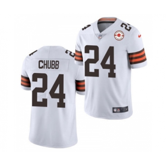 Men's Cleveland Browns #24 Nick Chubb 2021 White 75th Anniversary Patch Vapor Untouchable Limited Jersey