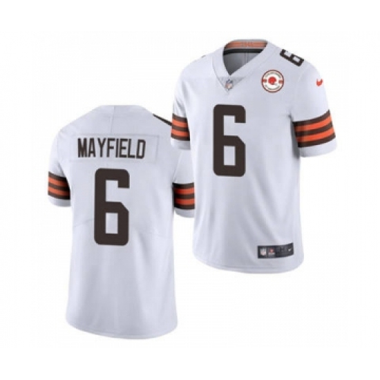 Men's Cleveland Browns #6 Baker Mayfield 2021 White 75th Anniversary Patch Vapor Untouchable Limited Jersey