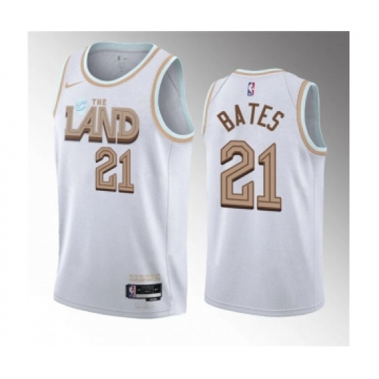 Men's Cleveland Cavaliers #21 Emoni Bates White 2023 Draft City Edition Stitched Jersey