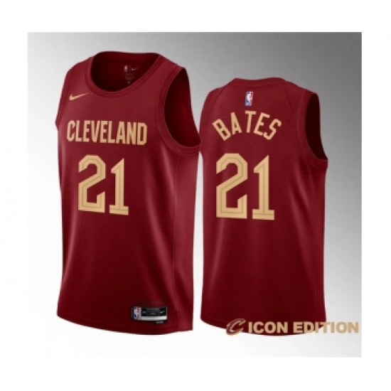 Men's Cleveland Cavaliers #21 Emoni Bates Wine 2023 Draft Icon Edition Stitched Jersey