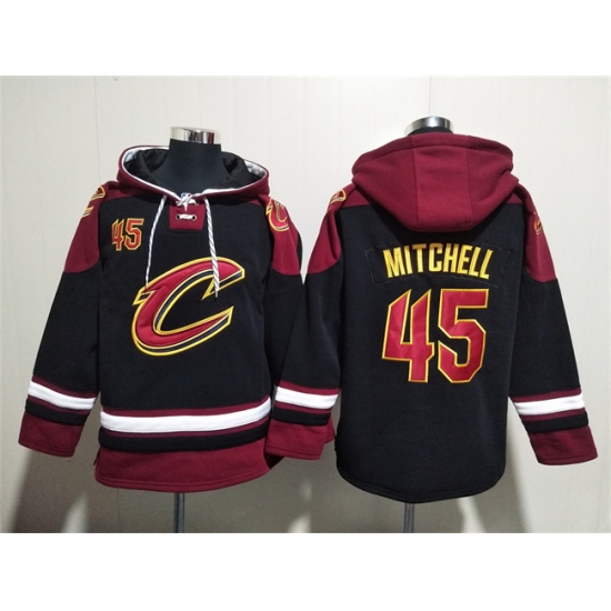 >Men's Cleveland Cavaliers #45 Donovan Mitchell Black Red Ageless Must-Have Lace-Up Pullover Hoodie