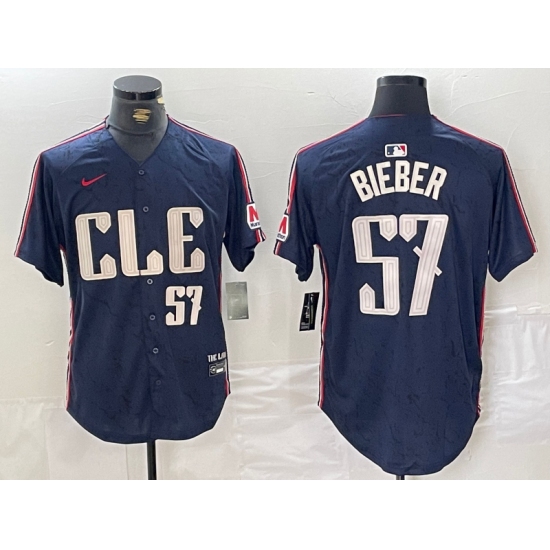 Men's Cleveland Guardians #57 Shane Bieber Number Navy 2024 City Connect Limited Stitched Jerseys