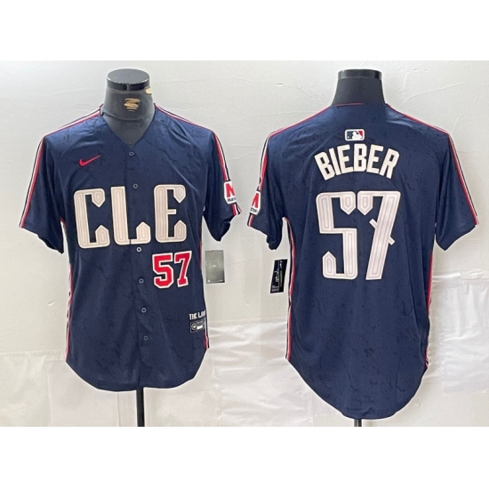 Men's Cleveland Guardians #57 Shane Bieber Navy 2024 City Connect Limited Stitched Jersey