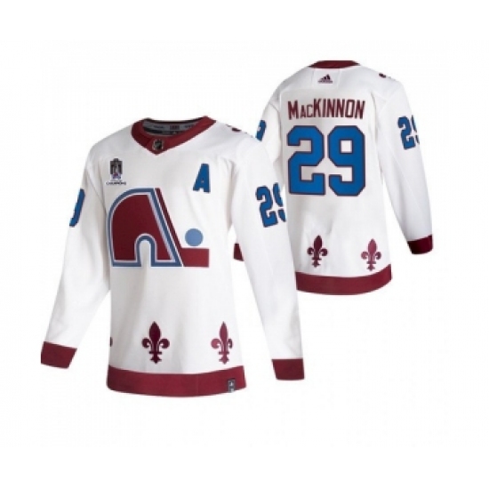 >Men's Colorado Avalanche #29 Nathan MacKinnon 2022 White Stanley Cup Champions Patch Stitched Jersey