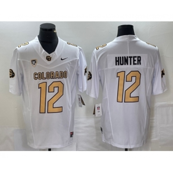 Men's Colorado Buffaloes #12 Travis Hunter White With PAC-12 Patch Stitched Football Jersey