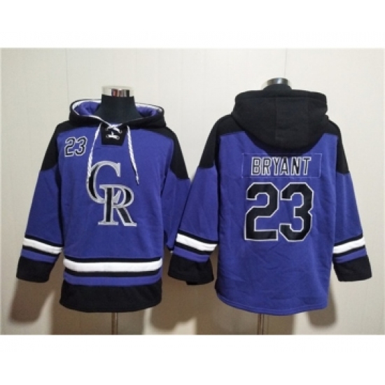 >Men's Colorado Rockies #23 Kris Bryant Purple Ageless Must-Have Lace-Up Pullover Hoodie
