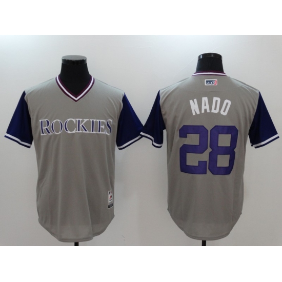 >Men's Colorado Rockies #28 Nolan Arenado Gray Baseball Jersey