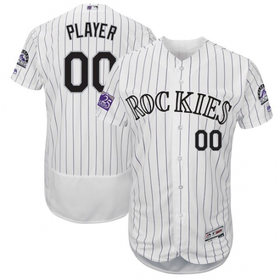 >Men's Colorado Rockies Majestic White 25th Season Patch On-Field Flex Base Custom Jersey