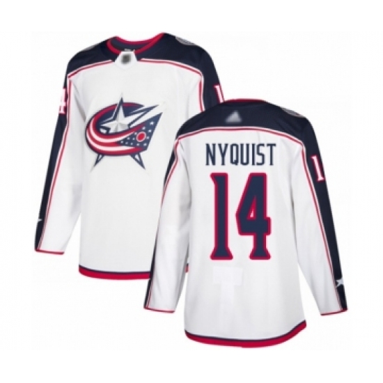 Men's Columbus Blue Jackets #14 Gustav Nyquist Authentic White Away Hockey Jersey