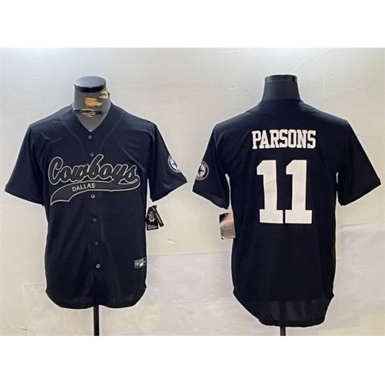 Men's Dallas Cowboys #11 Micah Parsons Black With Cool Base Stitched Baseball Jersey