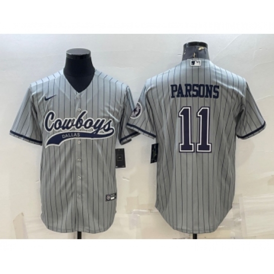 >Men's Dallas Cowboys #11 Micah Parsons Grey With Patch Cool Base Stitched Baseball Jersey