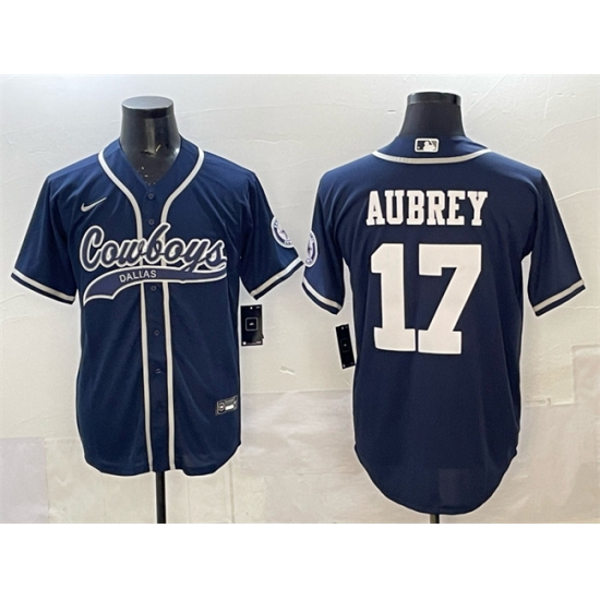 >Men's Dallas Cowboys #17 Brandon Aubrey Navy Cool Base Stitched Baseball Jersey