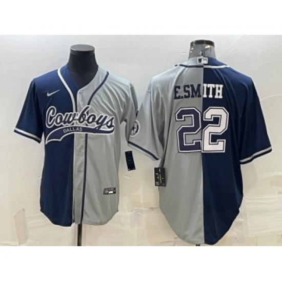 Men's Dallas Cowboys #22 Emmitt Smith Navy Grey Split With Patch Cool Base Stitched Baseball Jersey