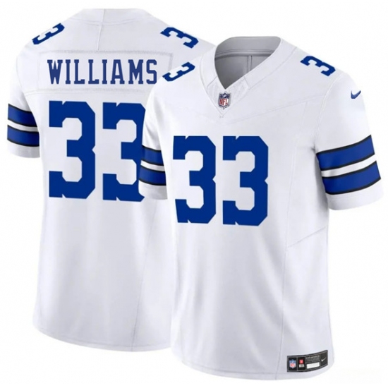 >Men's Dallas Cowboys #33 Javonte Williams White 2025 F.U.S.E. Vapor Untouchable Limited Football Stitched Jersey