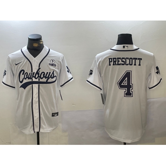 Men's Dallas Cowboys #4 Dak Prescott White With 1960 Cool Base Stitched Baseball Jersey
