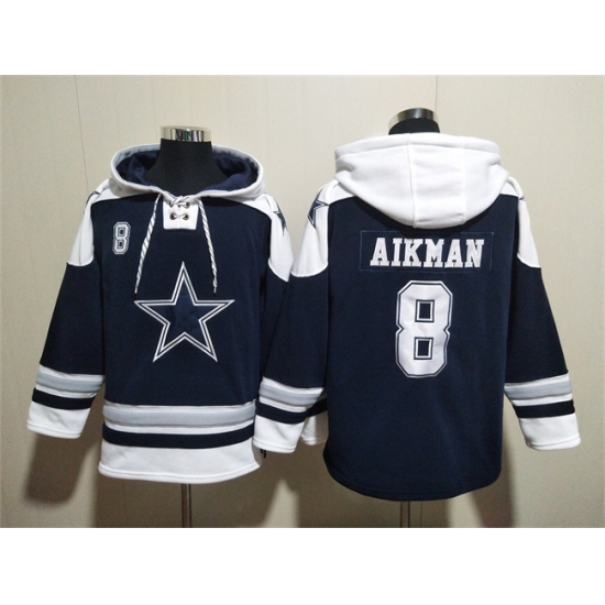 Men's Dallas Cowboys #8 Troy Aikman Navy Ageless Must-Have Lace-Up Pullover Hoodie