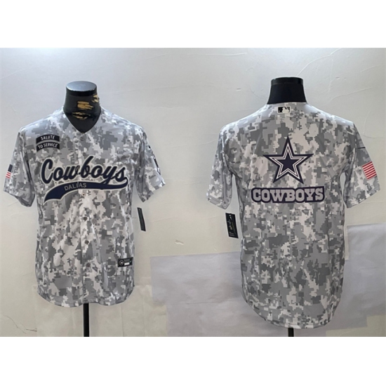 >Men's Dallas Cowboys Team Big Logo 2024 Arctic Camo Salute To Service Stitched Baseball Jerseys