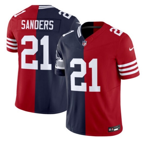 Men's Dallas Cowboys X 49ers #21 Deion Sanders Navy Red Split F.U.S.E. Vapor Limited Stitched Jersey