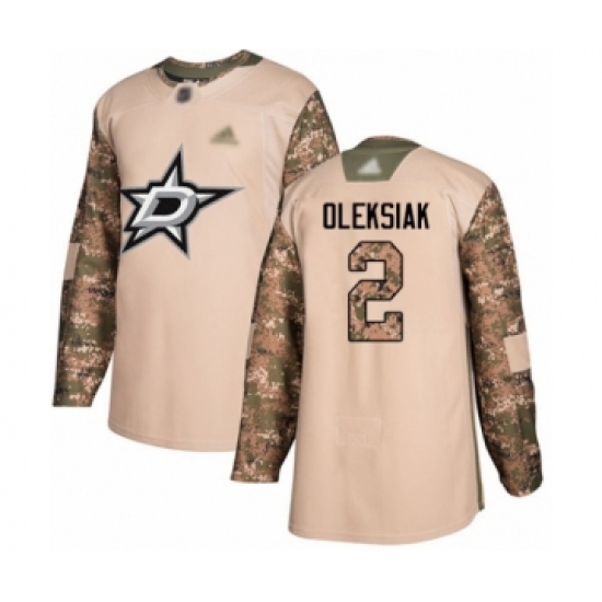 >Men's Dallas Stars #2 Jamie Oleksiak Authentic Camo Veterans Day Practice Hockey Jersey
