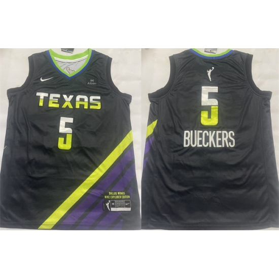 >Men's Dallas Wings #5 Paige Bueckers Black Stitched Basketball Jersey