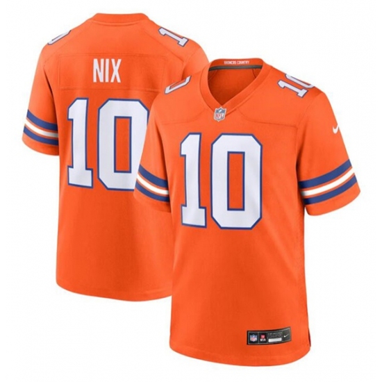 Men's Denver Broncos #10 Bo Nix Orange Mile High Collection F.U.S.E. 1977 Throwback Stitched Game Jersey