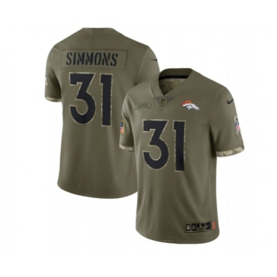 Men's Denver Broncos #31 Justin Simmons 2022 Olive Salute To Service Limited Stitched Jersey