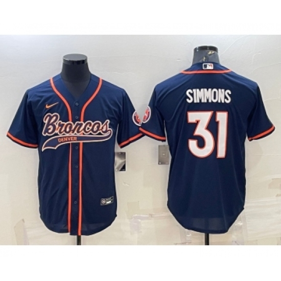 >Men's Denver Broncos #31 Justin Simmons Navy Blue Stitched Cool Base Nike Baseball Jersey