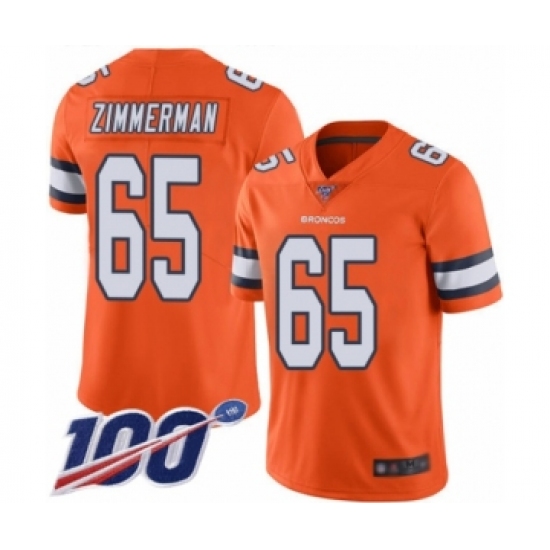 >Men's Denver Broncos #65 Gary Zimmerman Limited Orange Rush Vapor Untouchable 100th Season Football Jersey