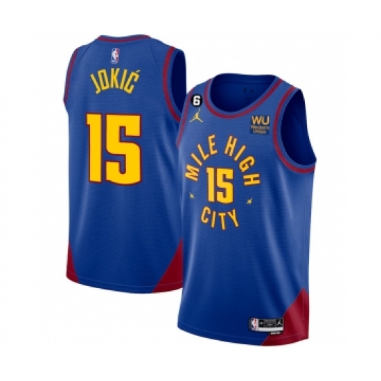 Men's Denver Nuggets #15 Nikola Jokic Blue 2022-23 Statement Edition With NO.6 Stitched Jersey
