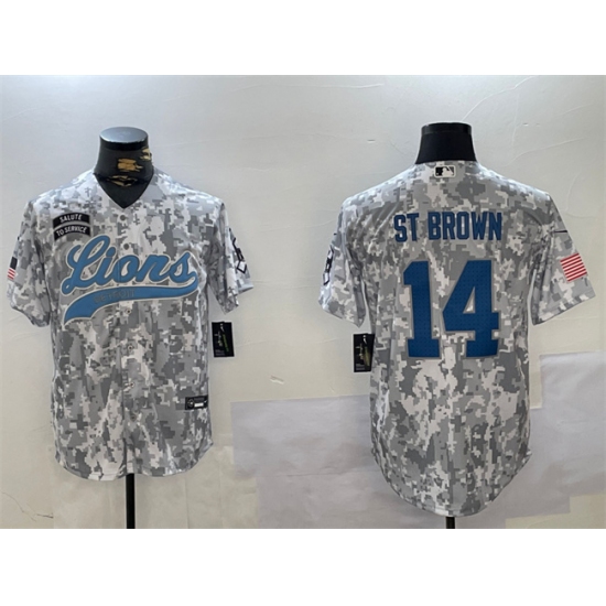 >Men's Detroit Lions #14 Amon-Ra St. Brown 2024 Arctic Camo Salute To Service Stitched Baseball Jersey