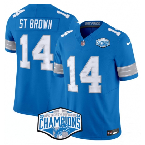 Men's Detroit Lions #14 Amon-Ra St. Brown Blue 2024 NFC North Champions F.U.S.E. Vapor Limited Stitched Jersey