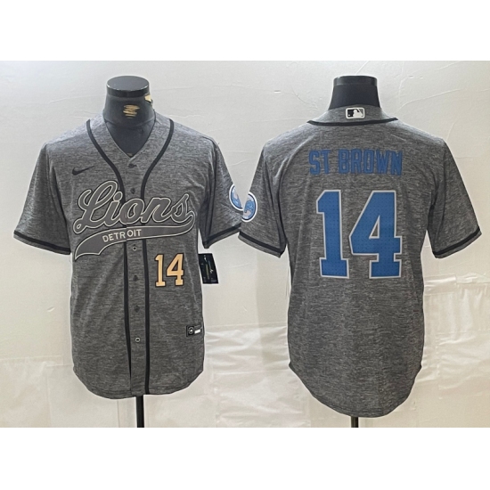 Men's Detroit Lions #14 Amon-Ra St. Brown Number Gray Cool Base Stitched Baseball Jersey