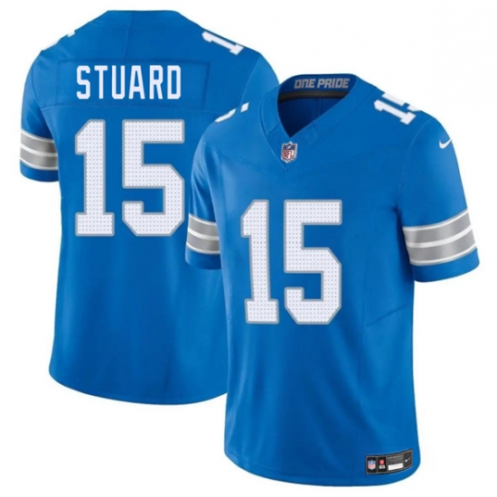 Men's Detroit Lions #15 Grant Stuard Blue 2025 F.U.S.E. Vapor Limited Football Stitched Jersey