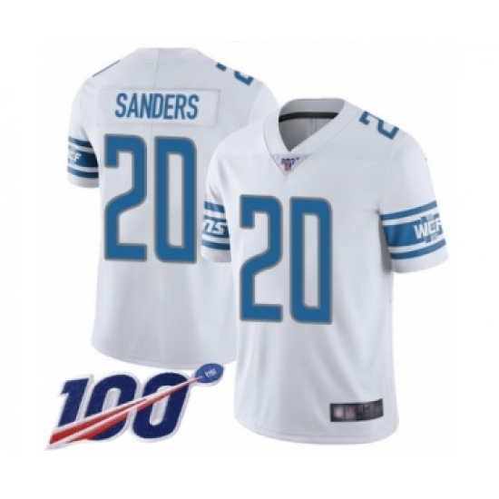 Men's Detroit Lions #20 Barry Sanders White Vapor Untouchable Limited Player 100th Season Football Jersey