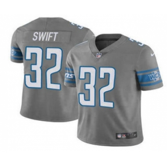 >Men's Detroit Lions #32 DAndre Swift 2021 Gray Vapor Untouchable Limited Stitched Jersey