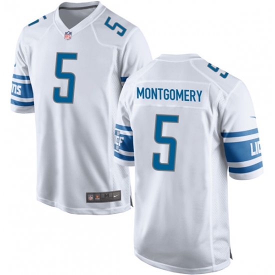 Men's Detroit Lions #5 David Montgomery White Football Stitched Game Jersey