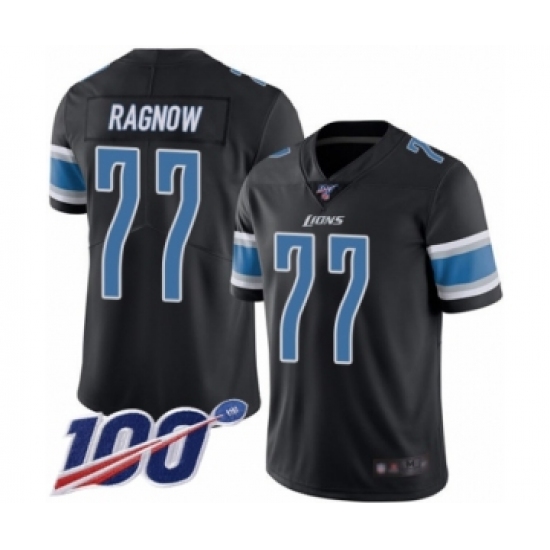 >Men's Detroit Lions #77 Frank Ragnow Limited Black Rush Vapor Untouchable 100th Season Football Jersey