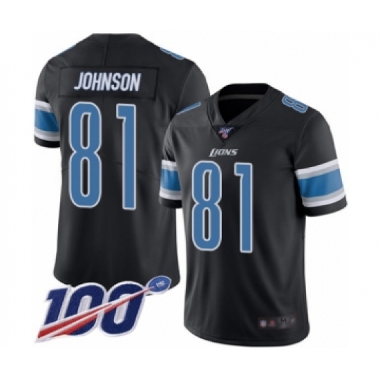 >Men's Detroit Lions #81 Calvin Johnson Limited Black Rush Vapor Untouchable 100th Season Football Jersey