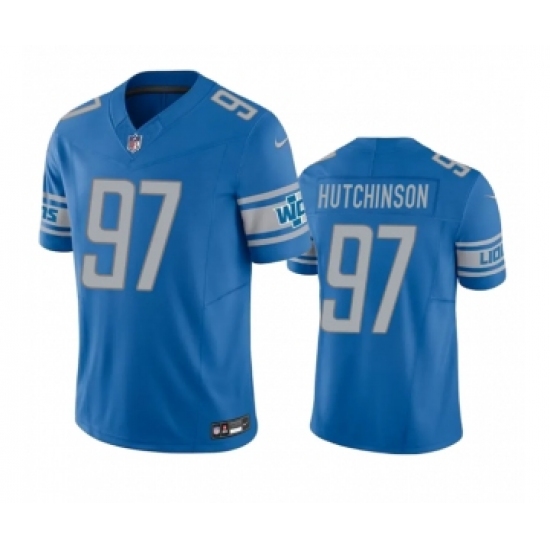 >Men's Detroit Lions #97 Aidan Hutchinson Blue 2023 F.U.S.E. Vapor Untouchable Limited Stitched Jersey