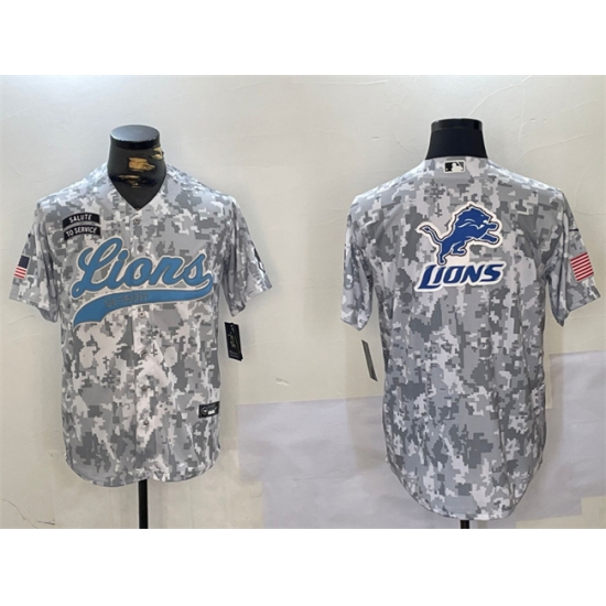>Men's Detroit Lions Team Big Logo 2024 Arctic Camo Salute To Service Stitched Baseball Jersey