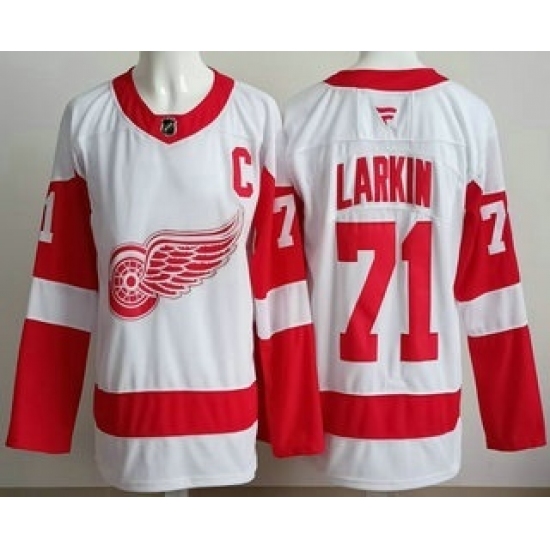 >Men's Detroit Red Wings #71 Dylan Larkin White Authentic Jersey