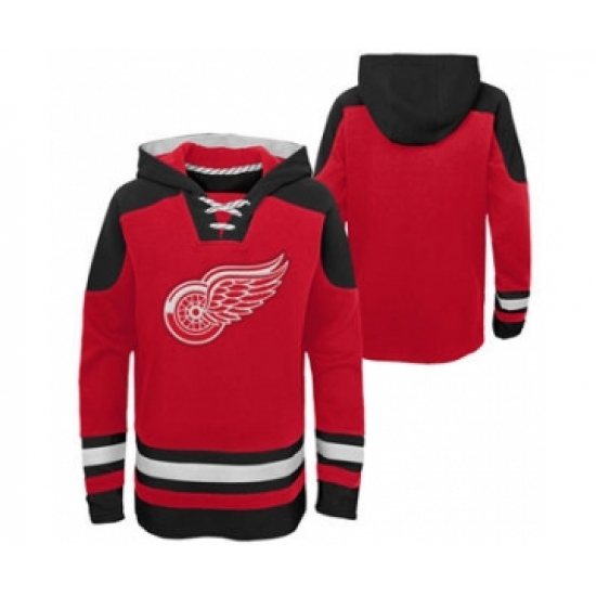>Men's Detroit Red Wings Blank Red Ageless Must-Have Lace-Up Pullover Hockey Hoodie