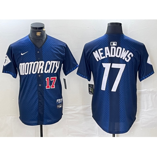 Men's Detroit Tigers #17 Parker Meadows Number Navy 2024 City Connect Cool Base Limited Stitched Jersey