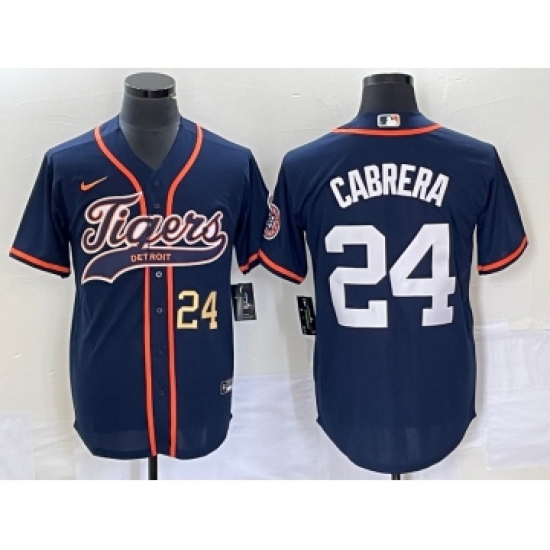 Men's Detroit Tigers #24 Miguel Cabrera Number Navy Blue Cool Base Stitched Baseball Jersey