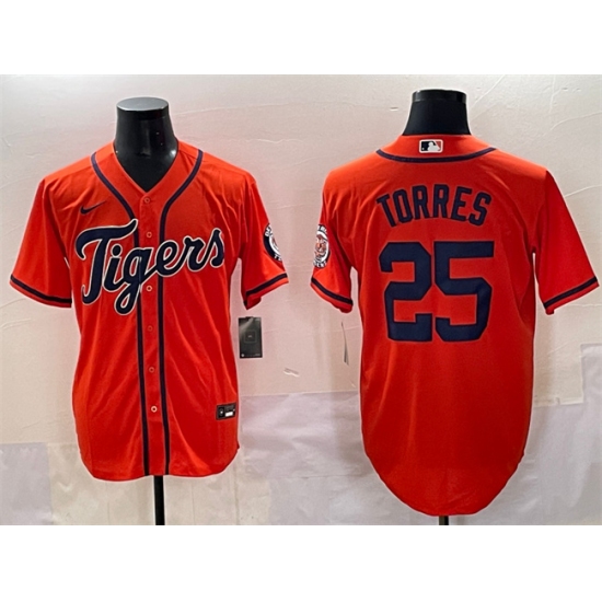 >Men's Detroit Tigers #25 Gleyber Torres Orange With Vapor Premier Limited Stitched Baseball Jersey